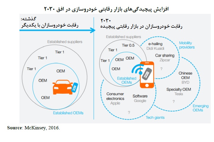 موسسه مک کنزی گزارشی با عنوان «صنعت خودرو در افق 2030» منتشر کرده و در آن دورنمای صنعت خودرو را براساس چهار تحول فناوری محور که شامل شیوه های متعدد سفرهای درون شهری، خودروهای خودران، تمام برقی سازی و سرویس های تبادل داده در خودرو می شود، مورد بررسی قرار داده است. مرکز پژوهش های مجلس این گزارش را خلاصه و در آن بخشی با مضمون «درس هایی برای صنعت خودروسازی ایران» اضافه کرده است.