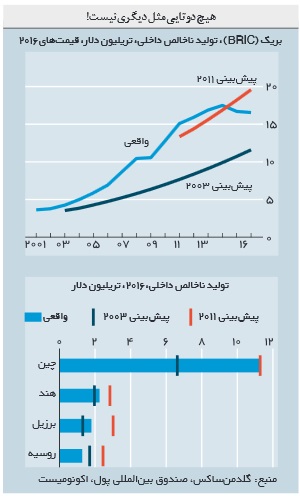 حالا تحلیلگران این پرسش را مطرح میکنند که آیا تحولات در اقتصادهای نوظهور بهویژه در روسیه و برزیل میتواند روح تازهای در این اقتصادهای نوظهور بدمد؟ زمانی که جیم اونیل کارشناس اقتصادیِ گلدمنساکس این اصطلاح را ابداع کرد تصور نمیکرد این اصطلاح تا اینجا پیش برود. در آن زمان هنوز افریقای جنوبی اقتصادی نوظهور شناخته نمیشد اما این کشور نیز رفتهرفته خودش را در میان اقتصادهای نوظهور جا داد. به هر حال اکنون اصلیترین مشکلِ اقتصادهای نوظهور، چین است. این کشور در میان بازارهای نوظهور، از همه موفقتر بودهاست. بزرگترین شرکتها در کشور چشمبادامیها قرار دارد. شرکتهای تکنولوژیِ چینی جزو موفقترین شرکتها در دنیا هستند. بازارهای چین هر روز بیشتر از روز گذشته آغوش خود را به روی جهانیان باز میکند و هر روز سرمایههای جدیدتری واردِ بازارهای این کشور میشود. حالا برای کشورهای نوظهور، تنها یک نگرانی وجود دارد و آن هم چین است؛ اگر چین بتواند وضعیت خودش را بهبود ببخشد میتوان به آینده اقتصادیِ بقیه کشورهای نوظهور و حتی بقیه کشورهای جهان نیز امیدوار بود. بزرگیِ اقتصاد چین، دامن تمامِ جهان را گرفتهاست.