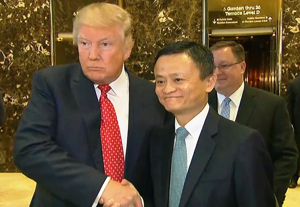 بلافاصله بعد از پیروزی ترامپ در انتخابات ریاست جمهوری، جک ما با او در نیویورک ملاقات کرد و تعهد بزرگی برای ایجاد شغل در امریکا با کمک شرکت های کوچک امریکایی داد. به این شکل که علی بابا محصولات آنها را به مصرف کنندگان در چین و دیگر نقاط آسیا به فروش برساند. اما در ماه سپتامبر جک ما عنوان کرد، دیگر اجرای این طرح امکانپذیر نیست.