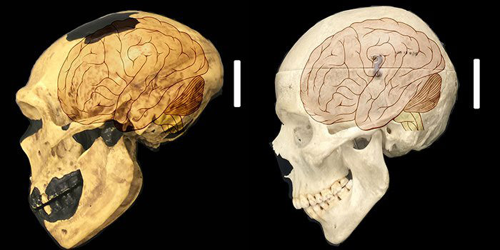 مغز نئاندرتال (چپ) و مغز انسان (راست)